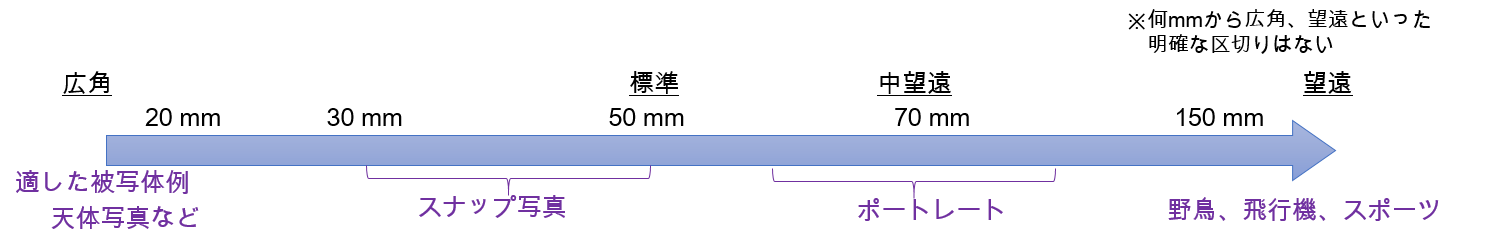 • 標準50 mm が人間の日常生活における画角に近く,最初の単焦点の焦点距離として良いと言われることがありますが,スマホのカメラはもっと広角であるため50 mmでは画角が小さいと感じるかもしれません。たとえば,外食して向かいに座った人とテーブルの写真を1枚に納めるには30~40mmくらいの広角である必要があります。